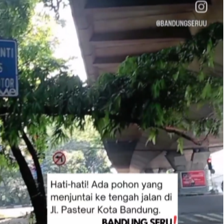 Wargi Bandung, Hati-hati! Bila melintas jalan Pasteur bawah flyover dekat PT. Biofarma karena ada pohon yang menjuntai ke tengah jalan.