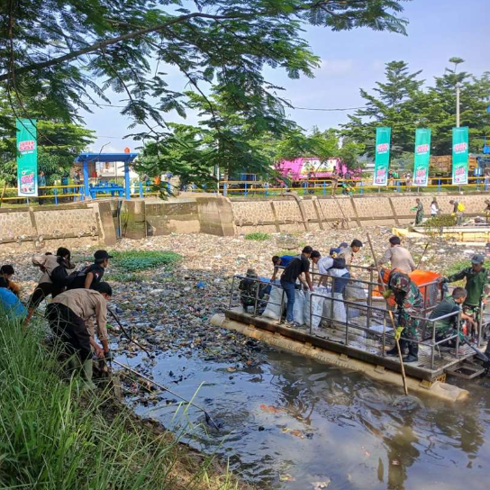 Sektor 6 Satgas Citarum Harum Bersihkan Sampah di Taman Air Baleendah