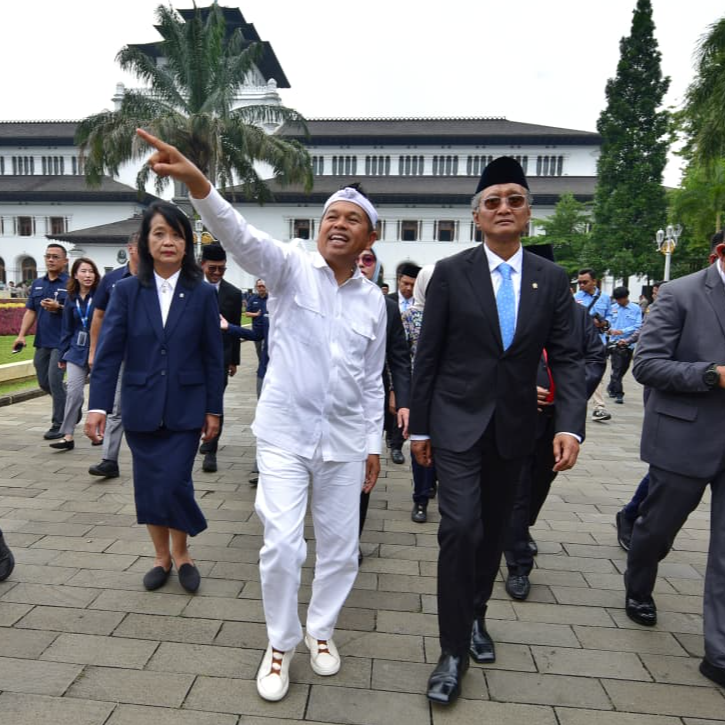 KOTA BANDUNG - Gubernur Jawa Barat Dedi Mulyadi bersama Wakil Gubernur Jawa Barat Erwan Setiawan menghadiri Upacara Hari Bakti ke-80 Pekerjaan Umum yang digelar di halaman Gedung Sate, Kota Bandung, Rabu (3/12/2025).