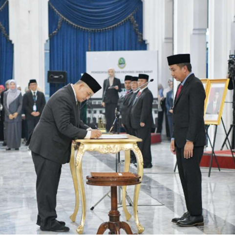 Penjabat Gubernur Jawa Barat Bey Machmudin melantik PNS dalam Jabatan Pimpinan Tinggi, Administrator, dan Pengawas di Gedung Sate, Kota Bandung, Rabu (25/9/2024).
