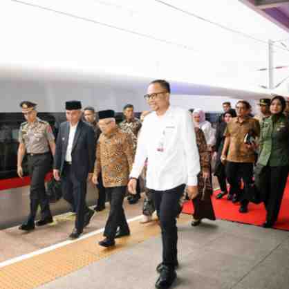 Penjabat Gubernur Jawa Barat Bey Machmudin beserta Penjabat Ketua TP PKK Jabar Amanda Soemedi Bey Machmudin menyambut kedatangan Wakil Presiden RI Ma'ruf Amin beserta istri Wury Ma’ruf Amin di Stasi...