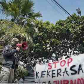 Jurnalis Rakyat Merdeka Online atau RMOL Jabar, Alvin Iskandar mendapat tindak intimidasi dan kekerasan dari orang tak dikenal (OTK) saat melakukan peliputan di Desa Wangunsari, Kecamatan Lembang, Kab...