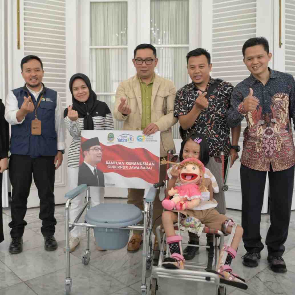 KOTA BANDUNG -- Gubernur Jawa Barat Ridwan Kamil memberikan bantuan untuk biaya pengobatan Revalatisha Amalia (10) yang menderita kelumpuhan.Bantuan diserahkan kepada pihak keluarga yang datang ke Ged...