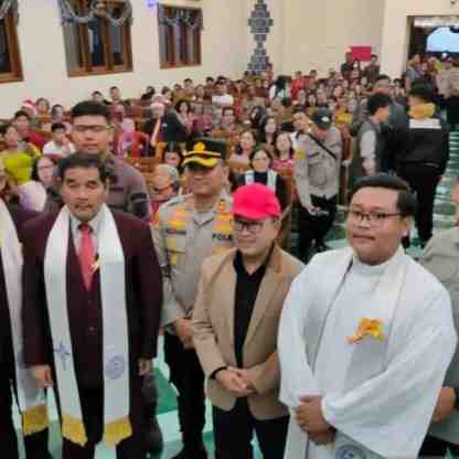 Kepolisian Resort Cianjur, Jawa Barat, menurunkan sekitar 400 personel gabungan guna mengamankan puluhan gereja yang menggelar ibadah pada saat malam Natal 2023, Minggu (24/12/2023).Kapolres Cianjur, ...