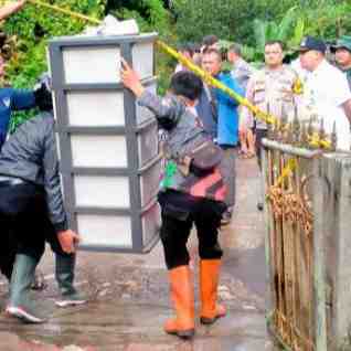 Badan Penanggulangan Bencana Daerah (BPBD) Kabupaten Sukabumi mulai mengaktifkan pos pengungsian untuk para warga Kampung Batuhilir di Desa Sekarwangi, Kecamatan Cibadak, Kabupaten Sukabumi, Provinsi ...