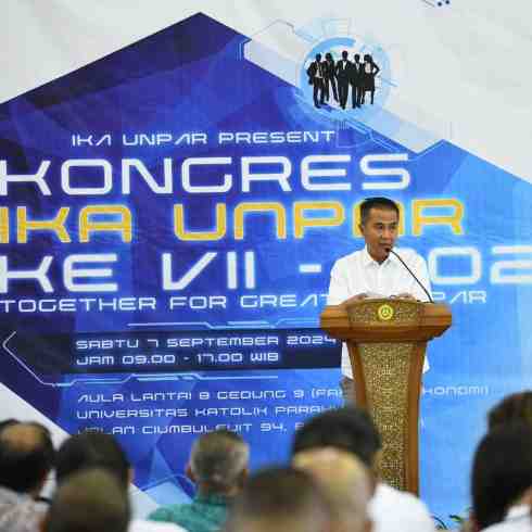 Penjabat Gubernur Jabar Bey Machmudin bernostalgia di kampus tempat kuliah saat menghadiri Kongres Nasional VII Ikatan Alumni Universitas Parahyangan, Kota Bandung, Sabtu (7/9/2024).Bey mengenang masa...