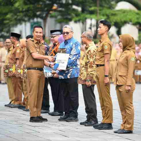 Penjabat (Pj.) Gubernur Jawa Barat Bey Machmudin menjadi pembina apel pagi Sekretariat Daerah (Setda) dan BPKAD Provinsi Jabar di Gedung Sate, Kota Bandung, Senin (4/11/2024).Dalam apel tersebut, Bey ...