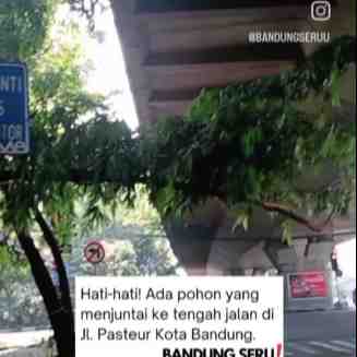 Wargi Bandung, Hati-hati! Bila melintas jalan Pasteur bawah flyover dekat PT. Biofarma karena ada pohon yang menjuntai ke tengah jalan.---cc @dpkpbdg Untuk Dinas terkait, mohon atensi ditindak lanjut....