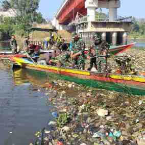 Pembersihan sampah Sungai Citarum di kawasan Jembatan Babakan Sapan (BBS) Batujajar, Desa Selacau, Kecamatan Batujajar, Kabupaten Bandung Barat, dapat diselesaikan hari ini, Senin (15/7/2024).Sampah y...